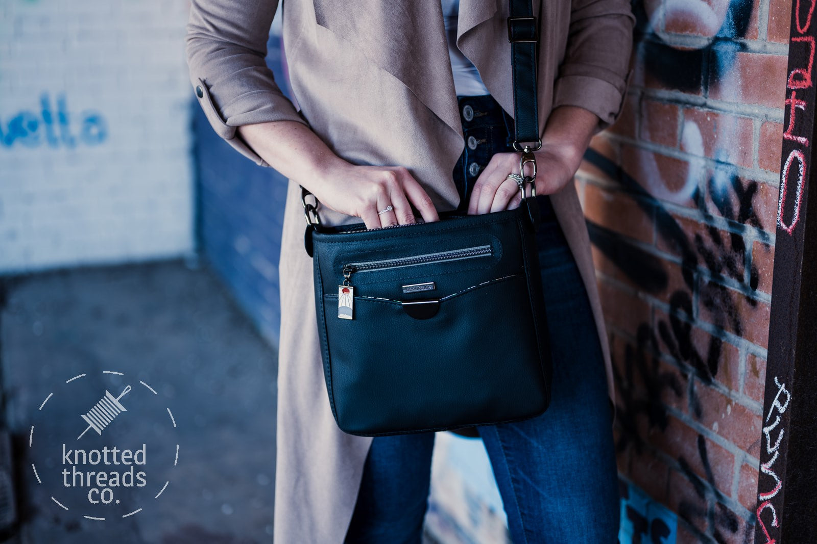 The Gaia Crossbody is a mid-sized everyday crossbody featuring all the pockets! Including a front slip pocket that can be single or divided, front zippered pocket, back zippered pocket, zippered enclosure, and dual interior slip pockets. Functionality meets class in a comfortable size with a hands-free design!