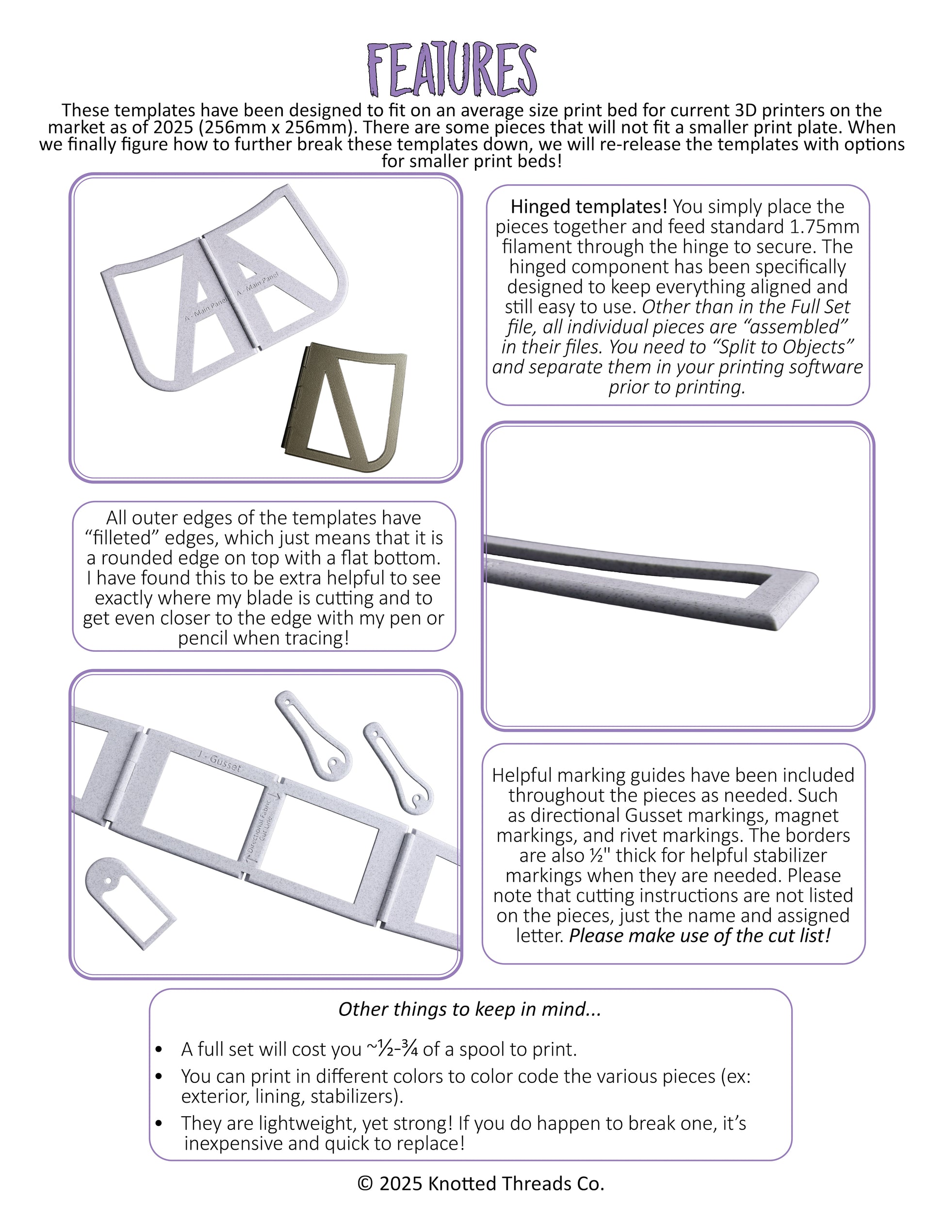 This is NOT a PDF Pattern. These are digital files to 3D print your own templates for the Aries Crossbody PDF Pattern. Refunds will not be given if you fail to read the product description or title and purchase the wrong product.