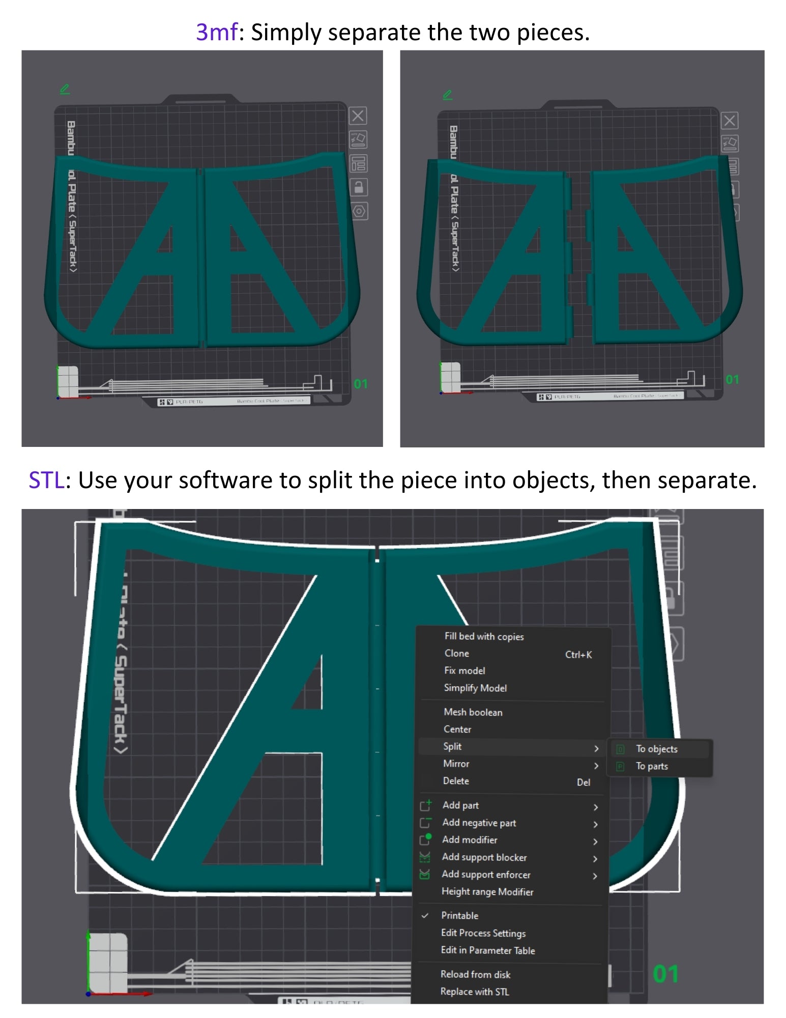 • A .3mf file with all pieces arranged, a bonus tag, and with the print profile set and ready for a BambuLab printers.