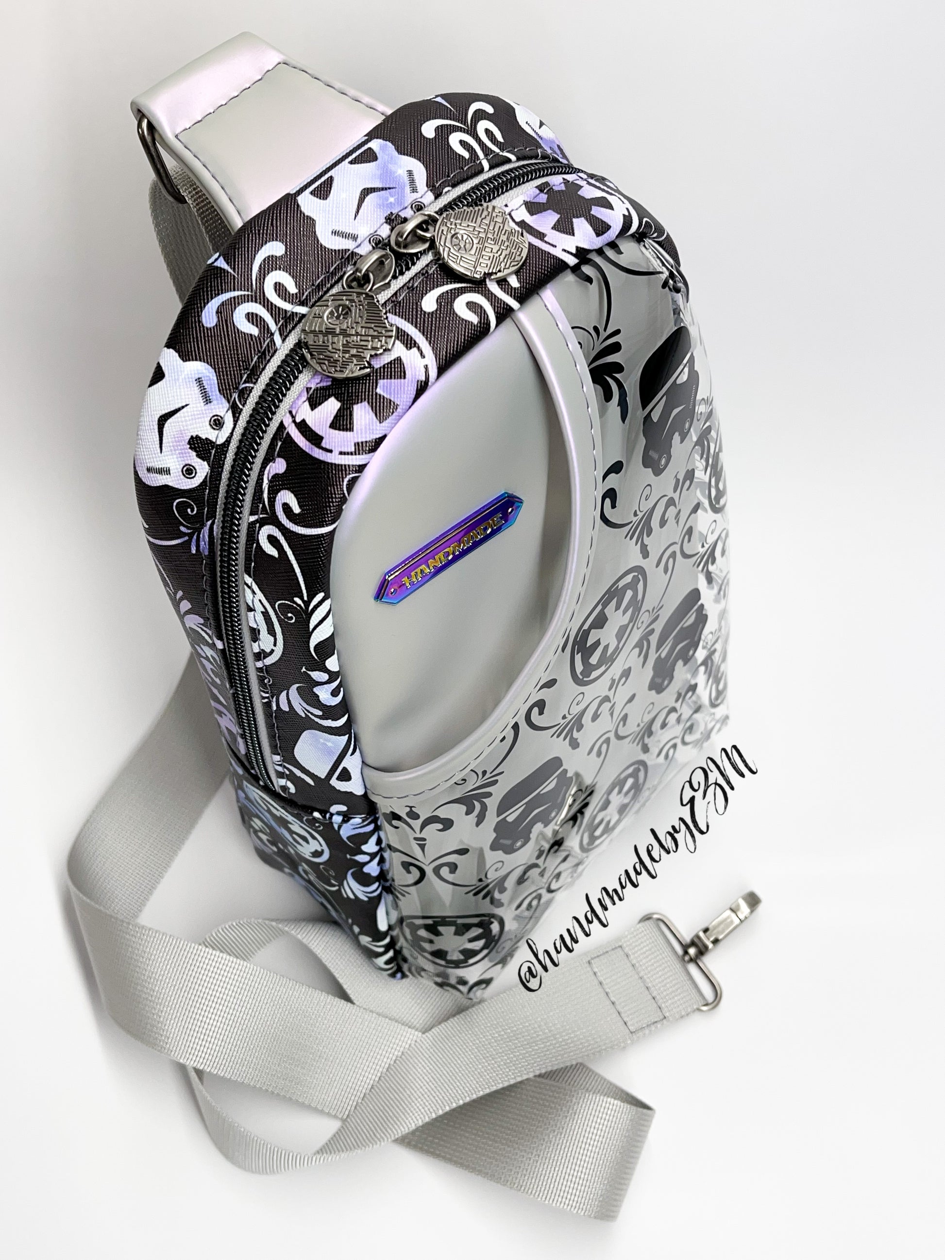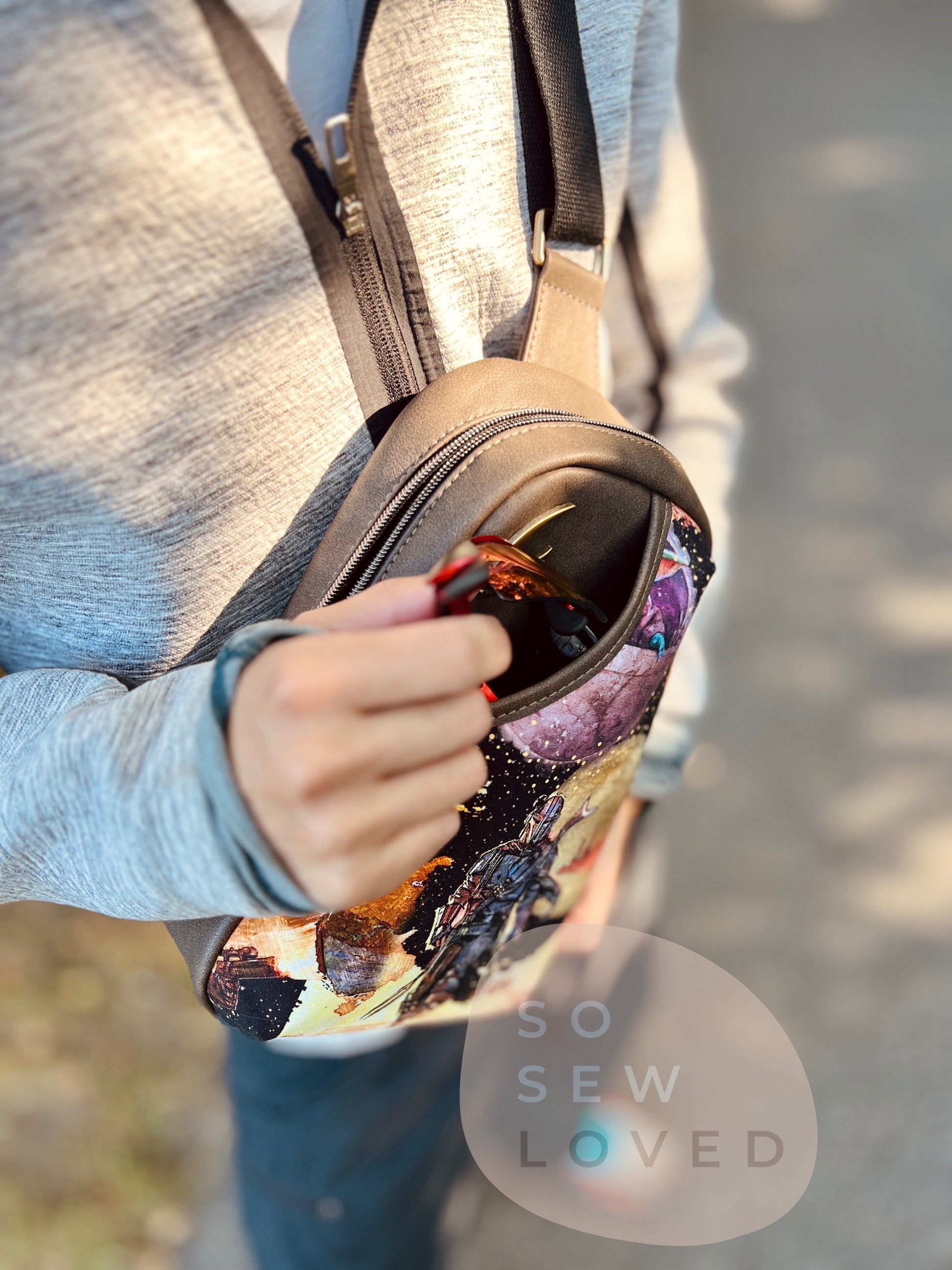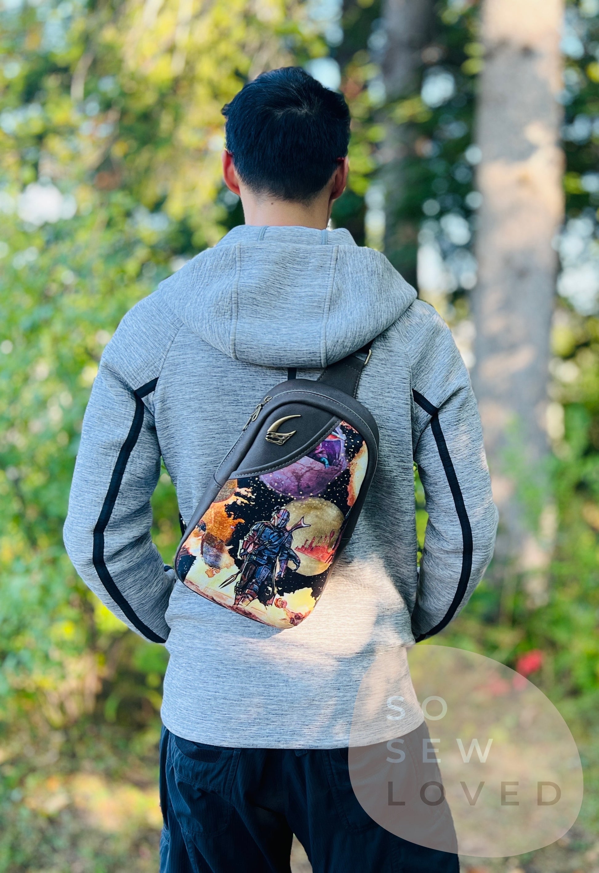 This PDF sewing pattern offers over 300 photos to accompany meticulously detailed instructions. Additional instructions have been provided to make the sling fully or partially clear. Lots of tips, tricks, and extras included to help you along the way. Plus an occasional giggle or two.