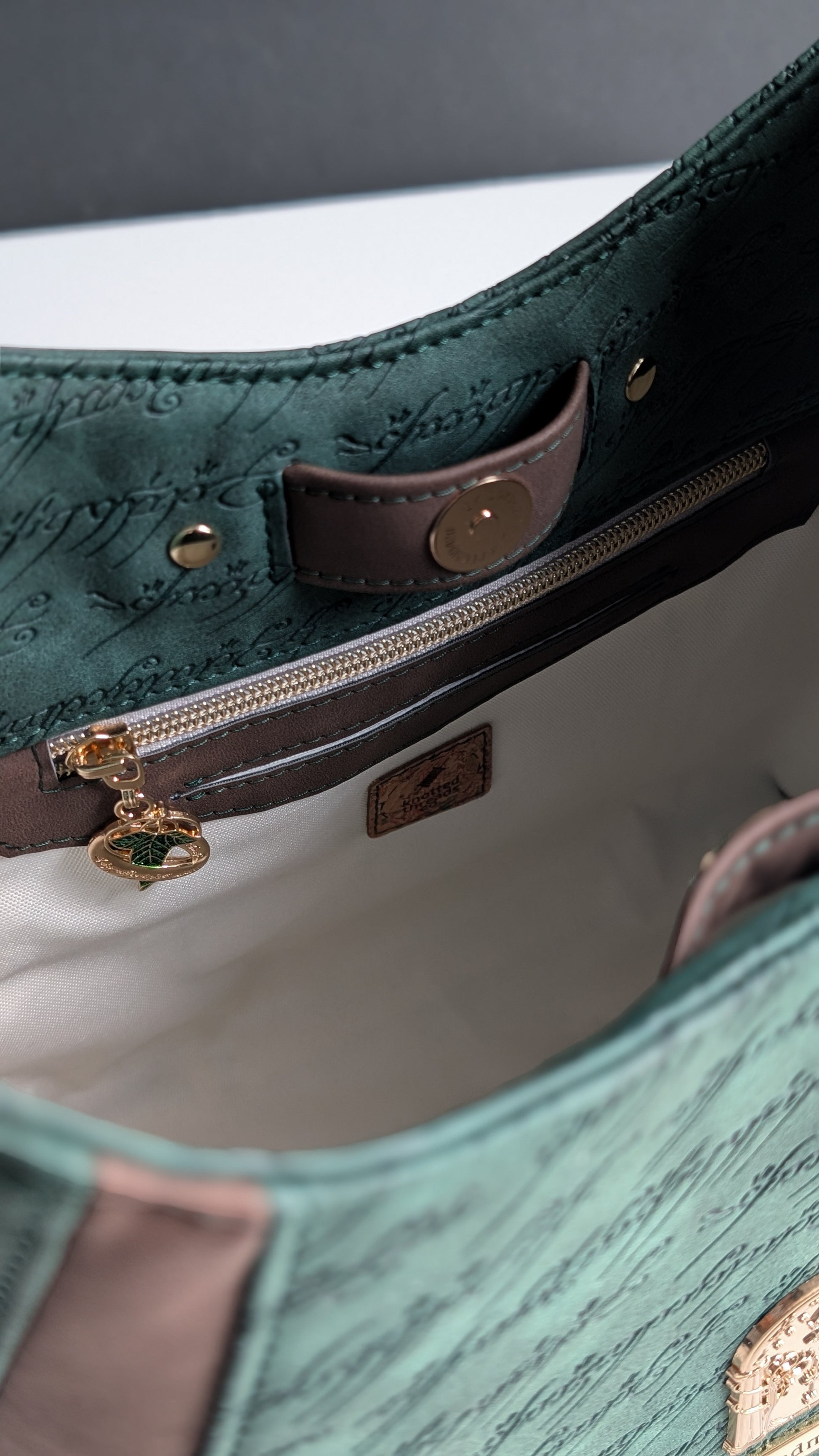 - Coordinating gold hardware and tags are thoughtfully accented throughout the bag.